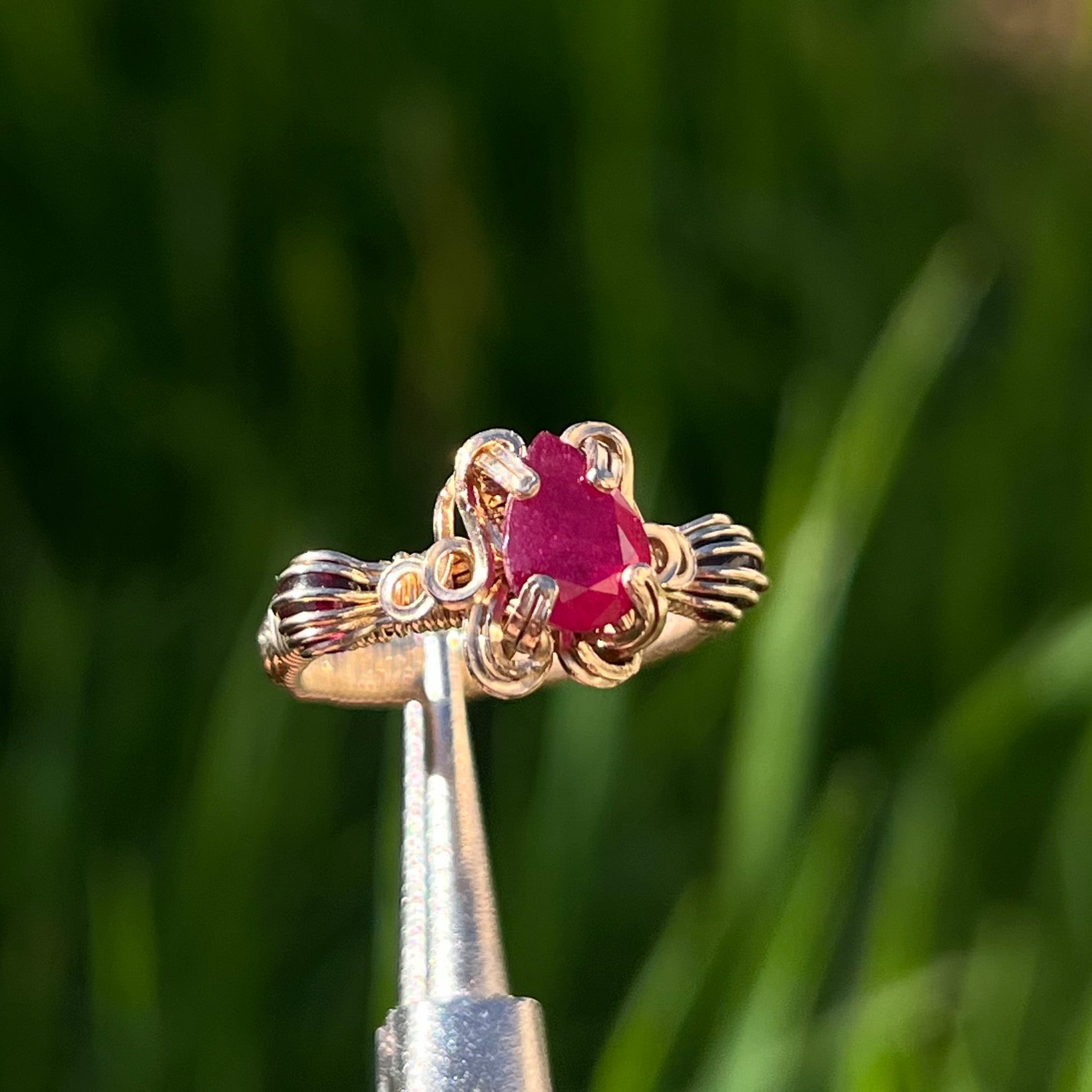 14K Yellow Gold Filled Garnet & Pear Cut Ruby Ring ♡