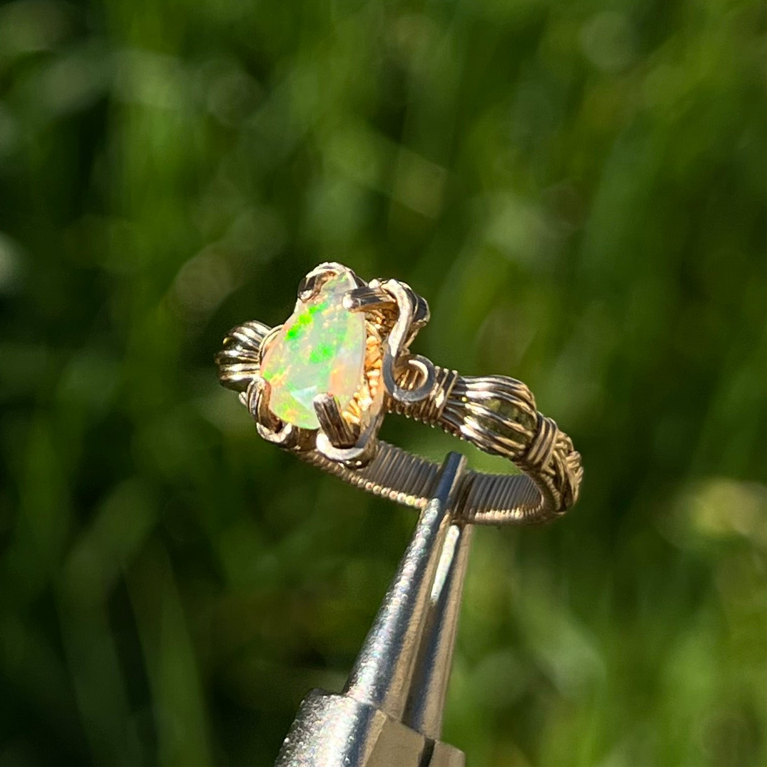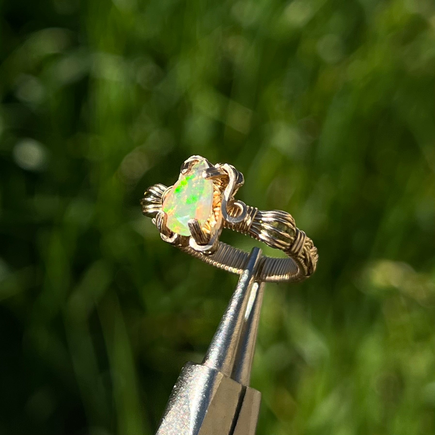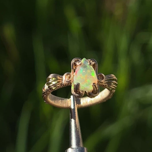 14K Yellow Gold Filled Peridot & Pear Cut Ethiopian Welo Opal Ring ♡